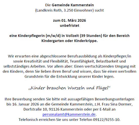 Leitung der Kindertagesstätte Kammerstein Kinderkrippe, Kindergarten, KinderhortTelefon: